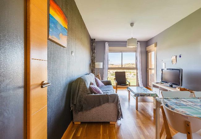 L'appartement dispose de deux chambres dont une avec un lit double et une salle de bain privée pour cette chambre, une deuxième chambre avec deux lits simples, une deuxième salle de bain (l'une des salles de bain est avec douche et l'autre avec baignoire). Cuisine indépendante, entièrement équipée. Salon-salle à manger où nous avons un canapé-lit double avec accès à une terrasse avec vue sur la montagne.