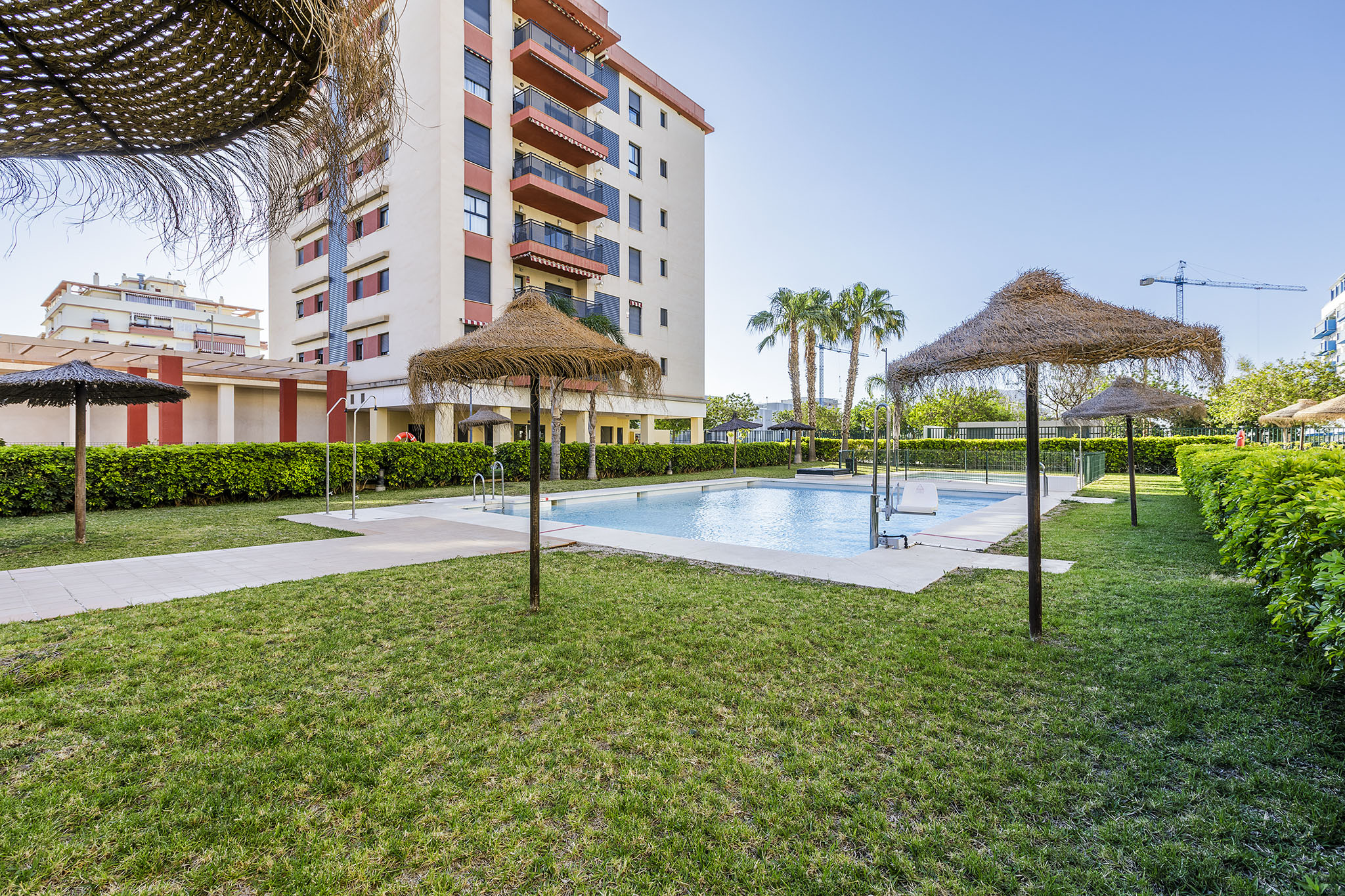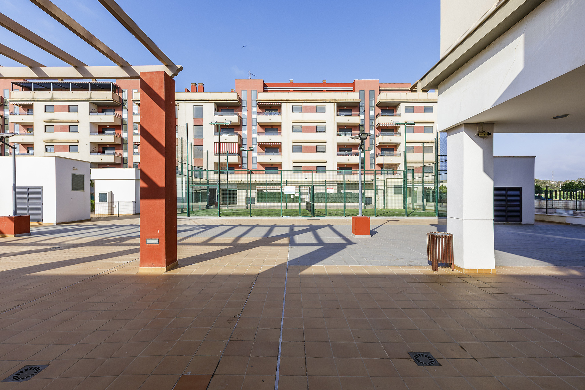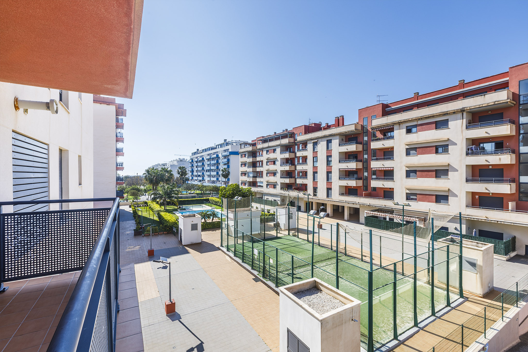 Le résidentiel où se trouve l'appartement est situé a une piscine communautaire, une piste de palette et des jardins.