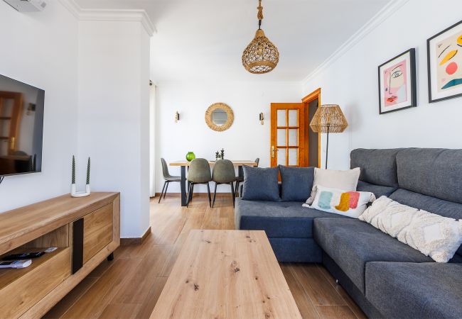 Appartement à Torre del Mar qui possède 3 chambre(s) et Capacité pour 5 personnes. Logement de 100 m². Elle dispose de ascenseur, mobilier de jardin, 20 m² de terrasse, lave-linge, fer à repasser, accès internet (wifi), sèche-cheveux, chauffage pompe à chaleur, climatisation, TV.La cuisine indépendante, à vitrocéramique, est équipée avec réfrigérateur, micro-ondes, congélateur, vaisselle/couverts, ustensiles/cuisine, cafetière, grille pain et bouilloire.
