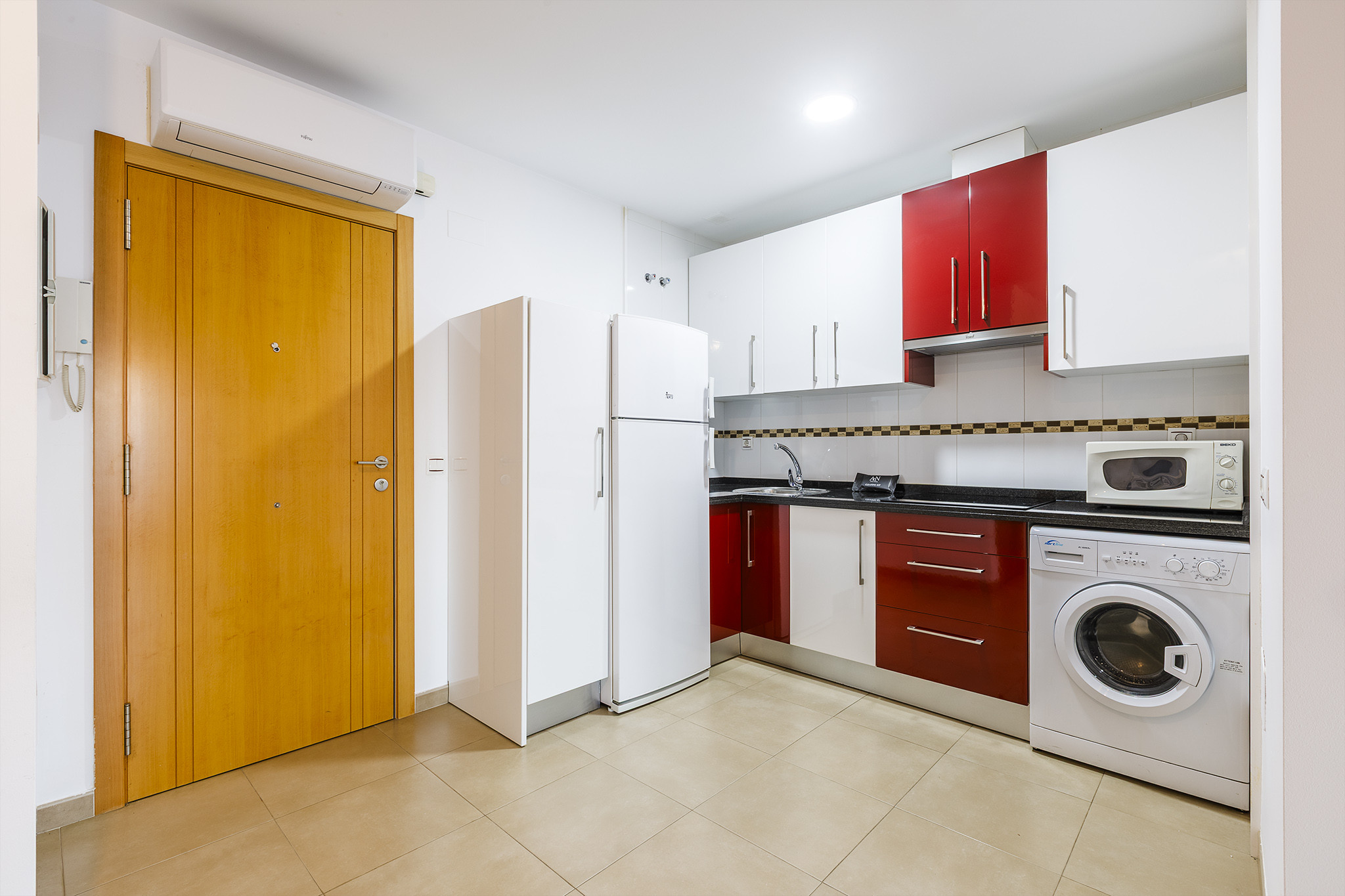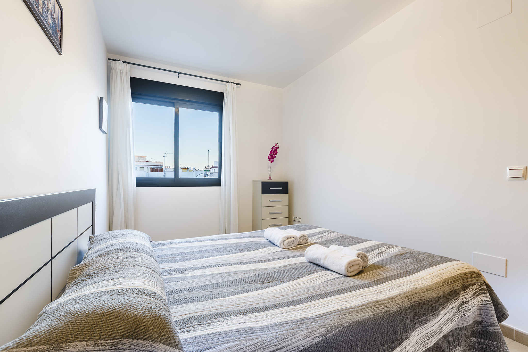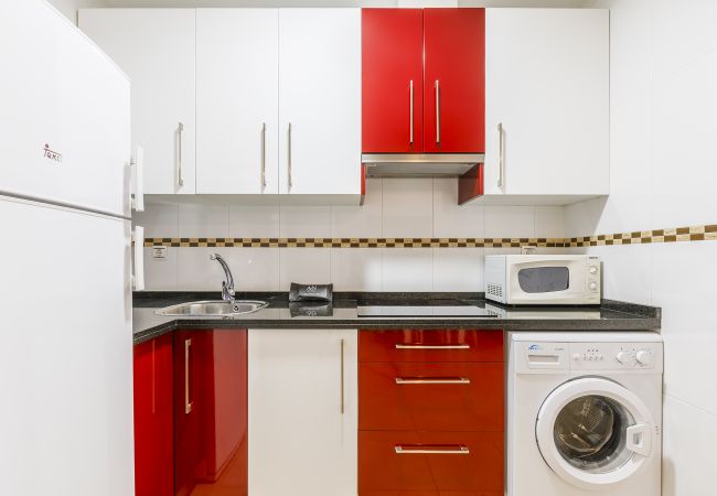 Den/det lägenhet i Torre del Mar har 1 sovrum och en kapacitet för 4 personer. Boende av 45 m². Boendet är utrustat med följande föremål: hiss, tvättmaskin, strykjärn, internet (Wifi), hårtork, värmepump, luftkonditionering, 1 TV. Den/det Öppet kök, av vitroceramic, är utrustat med kyl, mikrovågsugn, frys, tallrikar/bestick, köksredskap, kaffemaskin, brödrost och vattenkokare